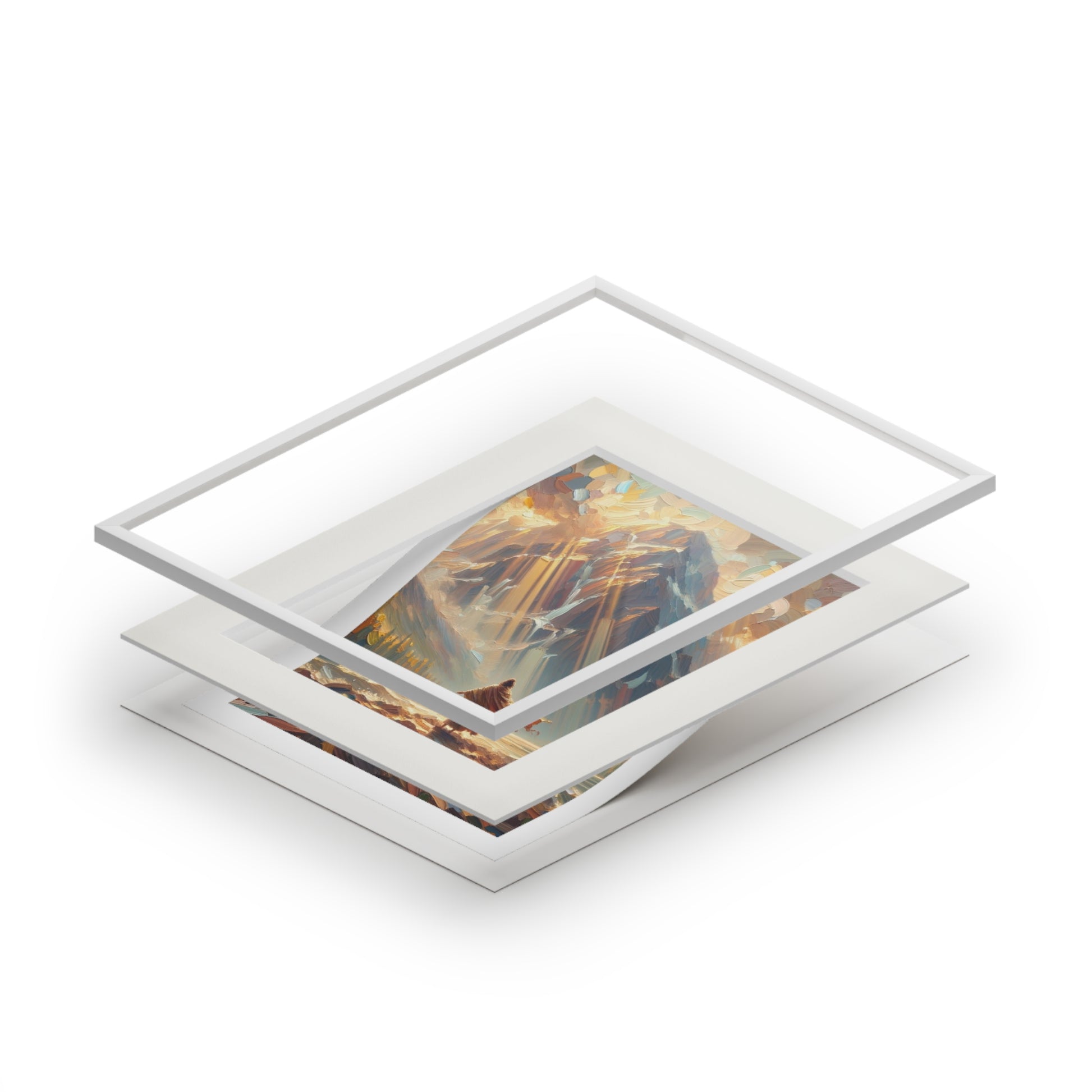 The artwork bursts with movement and light, symbolizing perseverance and spiritual strength. Warm golden hues merge with dynamic brushstrokes to evoke the feeling of divine energy — a reminder that even in our weakest moments, God’s power flows through us. This piece encourages believers to stand tall, face adversity with courage, and trust that nothing is impossible when Christ is our source of strength.