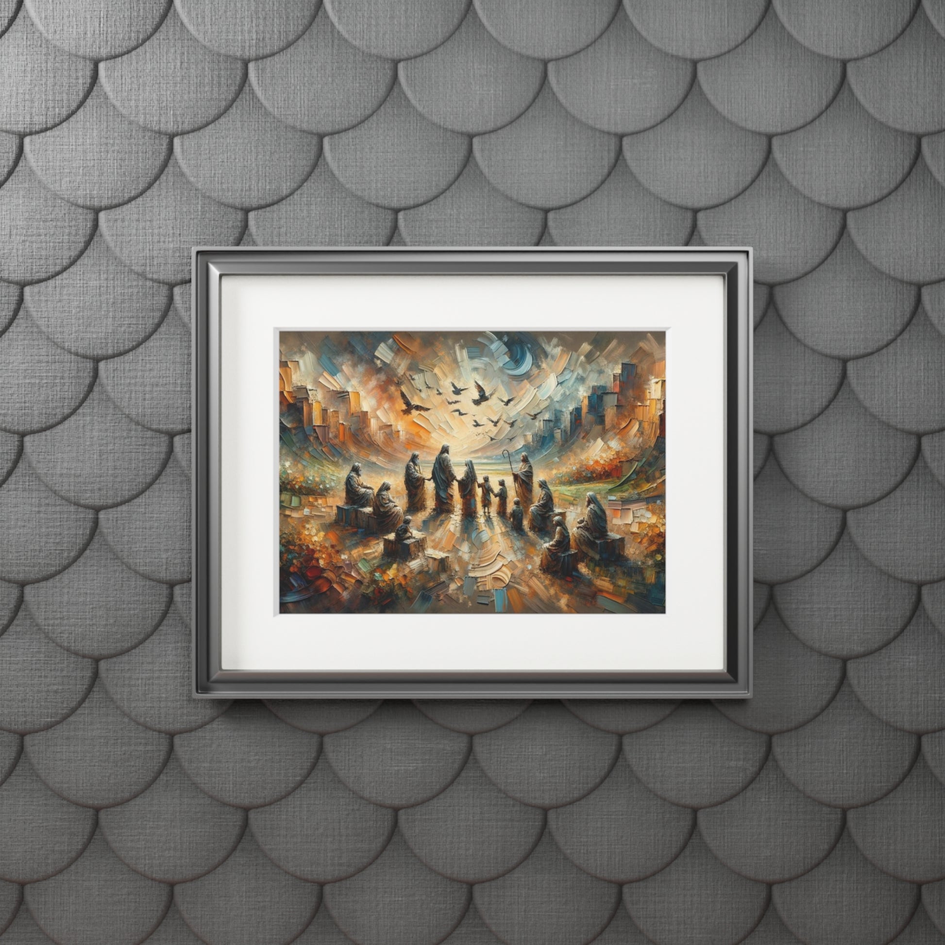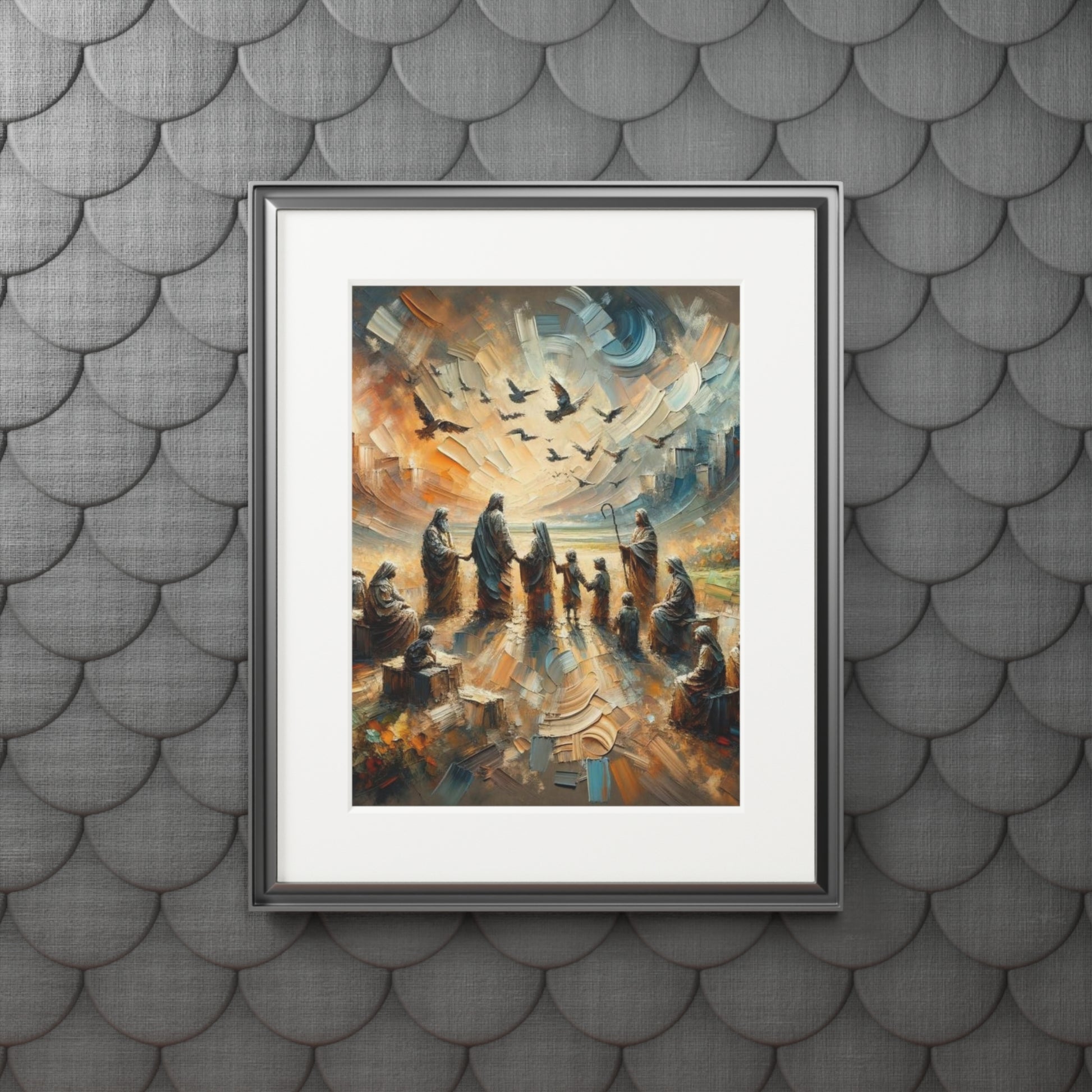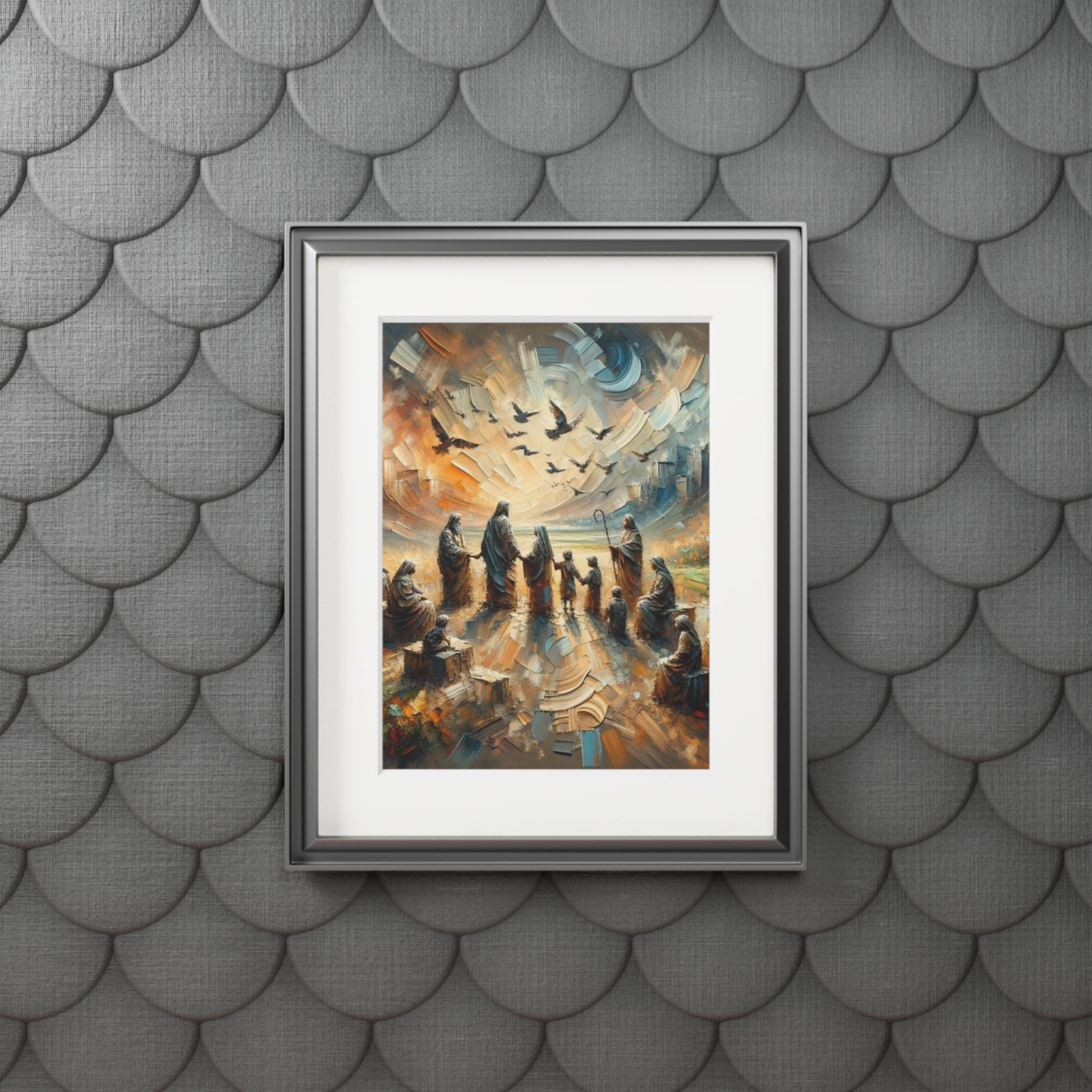 In a modern abstract style, the harmonious blend of warm colors evokes feelings of joy, trust, and hope. Each brush stroke xpresses the transformative power of guidance, reminding us of our sacred responsibility to instill faith and virtue in the young hearts entrusted to us. Hang this uplifting artwork in a nursery, family room, or educational space, and let it serve as a daily reminder of your precious role in shaping a faith-filled future.